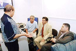 يقول: كنت جالساً ذات مرة في استديو «حكمت» في بغداد أيام التسعينات، فاستمعت إلى صوت يلقي قصيدتي «غريبة تصير ضدي»، وكان الإلقاء مدهشاً إلى حد السحر، فقلت لحكمت «هذه أول مرة يتفوق علي أحدهم بإلقاء قصائدي.. من هو هذا الشخص؟» فأجابني أنه «عبد الستار السكيني» وهو الصديق الذي فرّقني الزمن عنه منذ سنوات عدةّ، وكانت فرصتي للقاء به هناك.