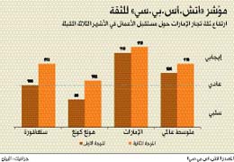 أظهر مؤشر توجهات شركات الأعمال في الإمارات المزيد من التحسن منذ أول دراسة استقصائية في الربع الثاني من عام 2009، حيث يتوقع 46 % (مقارنة بنسبة 34 % في الدراسة الأخيرة) من الشركات التجارية الصغيرة والمتوسطة العاملة في التصدير والاستيراد في الإمارات العربية المتحدة زيادةً في الأعمال التجارية خلال الأشهر الثلاثة المقبلة، في حين أن 40 % منهم يتوقعون أن تبقى الأعمال التجارية عند مستوياتها الحالية.