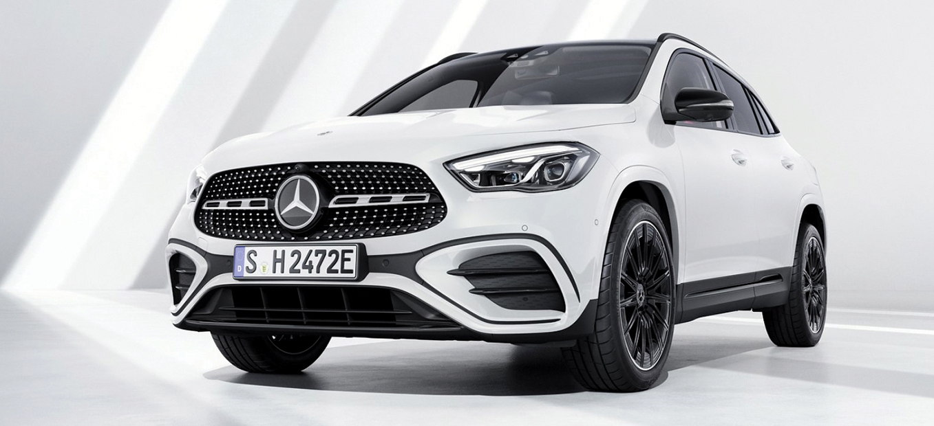 تقوم «مرسيدس-بنز» بترقية كبيرة لمجموعة سيارات «جي إل أيه إس يو في» المدمجة، وذلك عبر ابتكارات متعددة وأنظمة سلامة قياسية أكثر شمولًا. هذا وتعزز شبكة المبرد الجديدة بفتحاتها الرأسية وجنيحاتها الأفقية المظهر القوي للسيارة. في حين يعطي الغطاء الأمامي السيارة مظهرًا جريئًا وشخصية مفعمة بالثقة بفضل انحناءاته الثابتة والأنيقة. كما يعكس الشكل الجديد للمصد الأمامي جينات سيارات «جي إل أيه» وانتمائها إلى عالم الطرقات الوعرة.