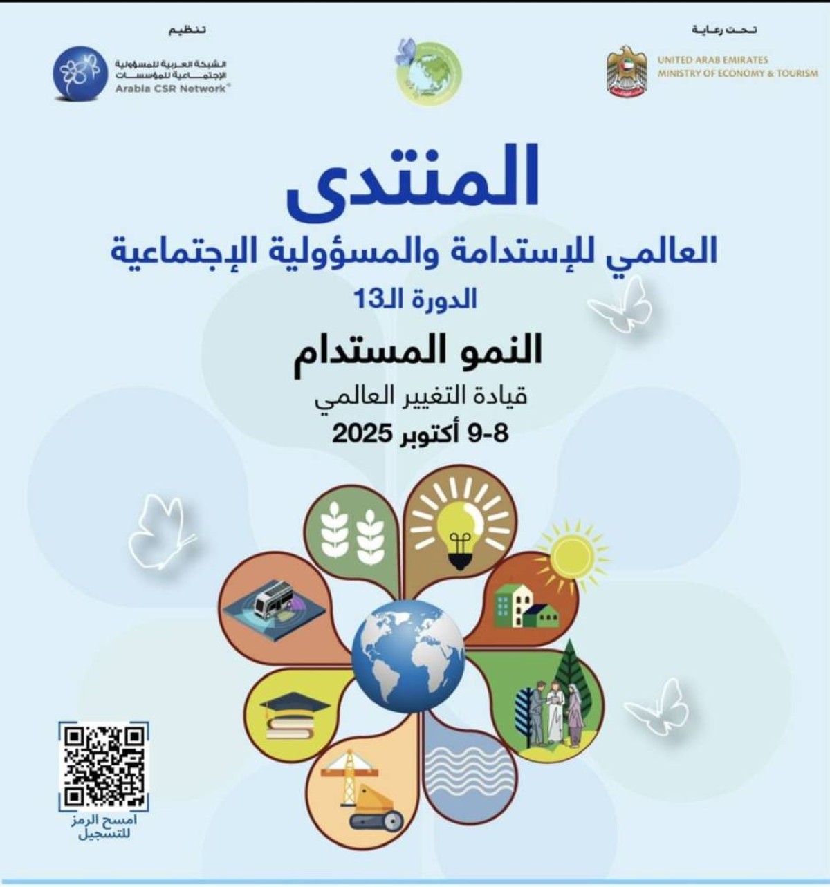 ويهدف المنتدى الذي تنظمه الشبكة العربية للمسؤولية الاجتماعية للمؤسسات، إلى ترسيخ مكانته كمنصة عالمية للحوار وتبادل الرؤى حول الحلول المبتكرة لمواجهة تحديات الاستدامة.
