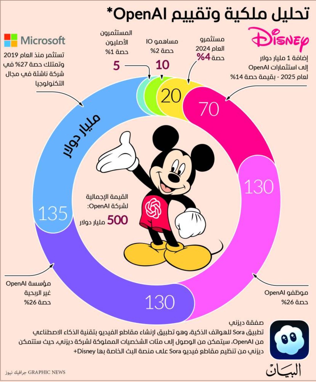 وستمنح «أوبن إيه آي» شركة «ديزني» خيار شراء أسهم إضافية في الشركة الناشئة سريعة النمو، إلى جانب حصتها المعلنة سابقاً البالغة مليار دولار.