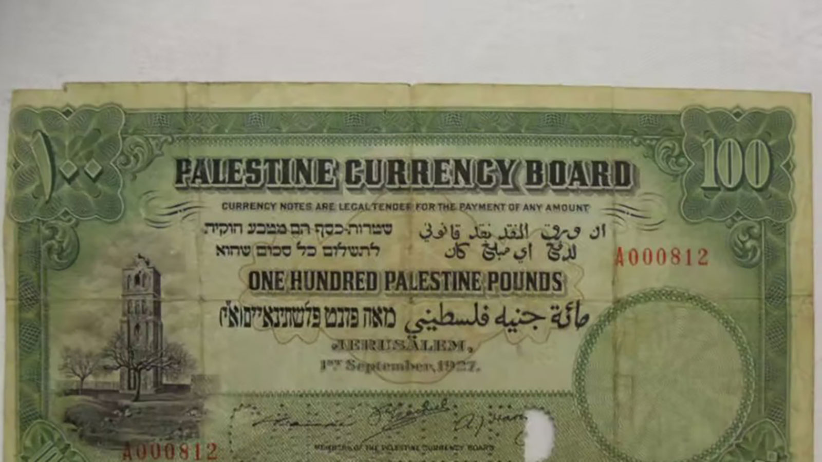 والعملة الورقية النادرة هي من ضمن أقل من عشر أوراق من القيمة ذاتها المعروف وجودها. وكانت تصدر للضباط من أصحاب المراكز الرفيعة أيام الانتداب البريطاني لفلسطين العام 1927، وقد بيعت مقابل 140 ألف جنيه إسترليني (حوالي 175 ألف دولار أمريكي)، بحسب "روسيا اليوم".