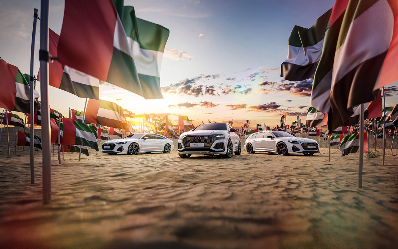 تحتفل أودي الشرق الأوسط بالذكرى الخمسين لتأسيس دولة الإمارات بإطلاق مجموعة من الطرز المحدودة تخليداً لذكرى خمسة عقود من القيادة الحكيمة والإنجازات الاستثنائية التي تحققت في الخمسين عاماً الأولى لدولة الإمارات. والمرة الأولى في تاريخ أودي، ستكون الإمارات أول دولة في العالم يتم إنتاج طرز محدودة خاصة بها من أودي بمناسبة ذكرى وطنية متميزة.