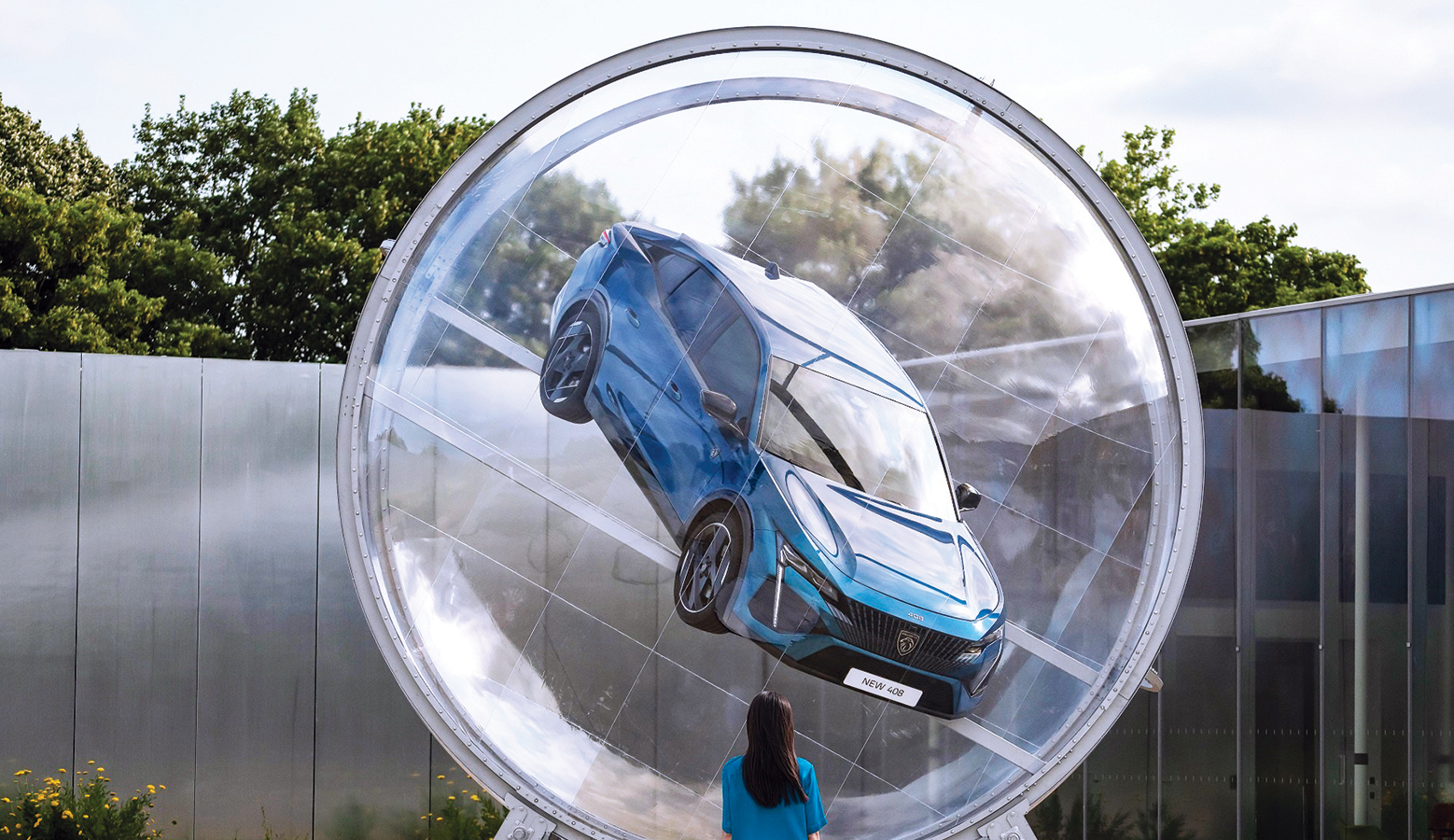 من جانبه، قال فيل يورك، مدير التسويق والاتصال لعلامة بيجو التجارية: تتميز بالابتكار في جميع المجالات. وتلك الكرة الشفافة، المصممة خصيصاً لعرض السيارة «بيجو 408» الجديدة، تبدع في إظهار جاذبية الطراز الجديد من جميع الجوانب. وهو تصميم يتماشى تماماً مع هوية علامة بيجو الجديدة.
