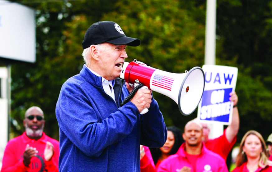 ترأس شون فاين رئيس اتحاد عمال السيارات المتحدين (UAW) وغيره من القادة العماليين مسيرة أول من أمس في شيكاغو للحفاظ على دعم أعضاء النقابة للإضراب ضد شركات صناعة السيارات في ديترويت الذي دخل الآن أسبوعه الرابع.