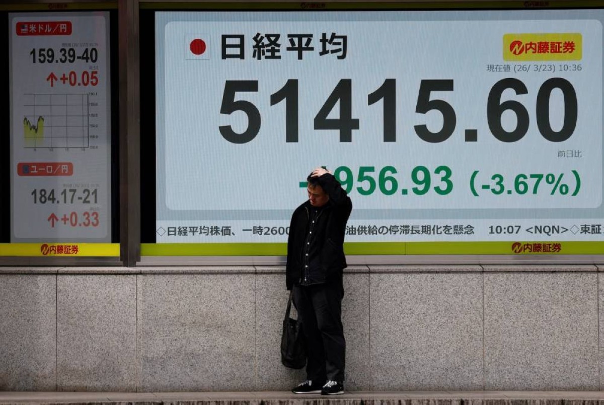 ومن بين 1600 سهم يتم تداولها في السوق الرئيسية لبورصة طوكيو، ارتفع 30 بالمئة وانخفض 65 بالمئة ولم يطرأ ​تغير يذكر على ‌أربعة بالمئة.