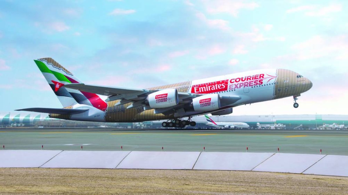 كشفت طيران الإمارات عن كسوة جديدة لطائرتها الإيرباص A380 العملاقة تحمل تصميماً مخصصاً للترويج لخدمتها الجديدة للتوصيل من الباب إلى الباب «الإمارات لخدمات الشحن السريع».