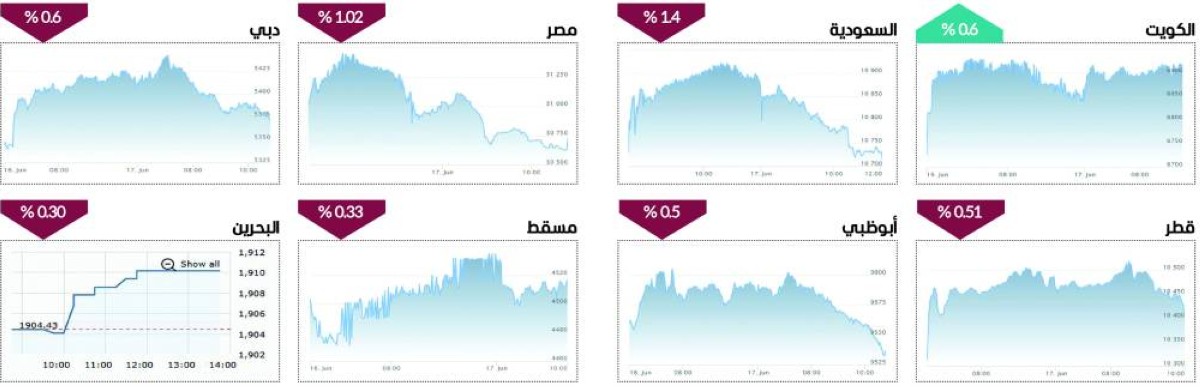 وتراجع المؤشر القطري بنسبة 0.51% بضغط من 6 قطاعات، كما تراجع مؤشر بوصة مسقط بنسبة 0.33%، ومؤشر البحرين بنسبة 0.30%، فيما حقت المؤشرات الكويتية مكاسب جماعية، وارتفع المؤشر الأول بنسبة 0.6%.