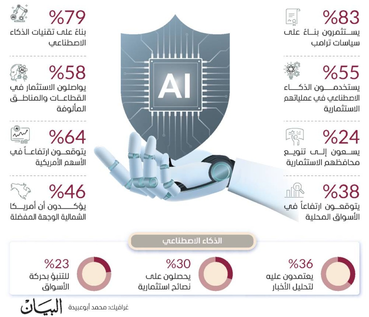 شمل الاستطلاع أكثر من 1.800 مستثمر من 11 سوقاً عالمية، وأظهرت نتائجه أن 55% من المشاركين في الشرق الأوسط وشمال أفريقيا يستخدمون أدوات الذكاء الاصطناعي في عملياتهم الاستثمارية، متفوقين على المتوسط العالمي البالغ 52%.