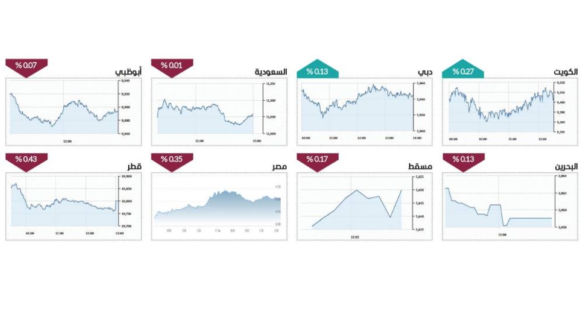 وشهدت أغلب مؤشرات البورصات العربية تراجعاً في الأداء، إذ تراجع المؤشر السعودي «تاسي» هامشياً بـ0.01%، والقطري 0.43%، ومسقط 0.17%، والبحرين 0.13%، فيما أغلقت بورصة الكويت مرتفعة 0.27%، وانخفض مؤشر بورصة مصر 0.35%.
