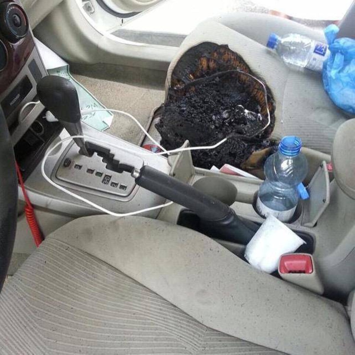ويلحق الانفجار أضراراً جسيمة بجميع أنواع الأشياء التي قد تكون منتشرة في أرجاء المقصورة، وجيوب الأبواب والمقاعد الخلفية لمحرك السيارة، وحذر خبراء السلامة على عدم تخزين هذه المادة في السيارة أبداً وهي علب مزيل العرق وفق ميل أونلاين.