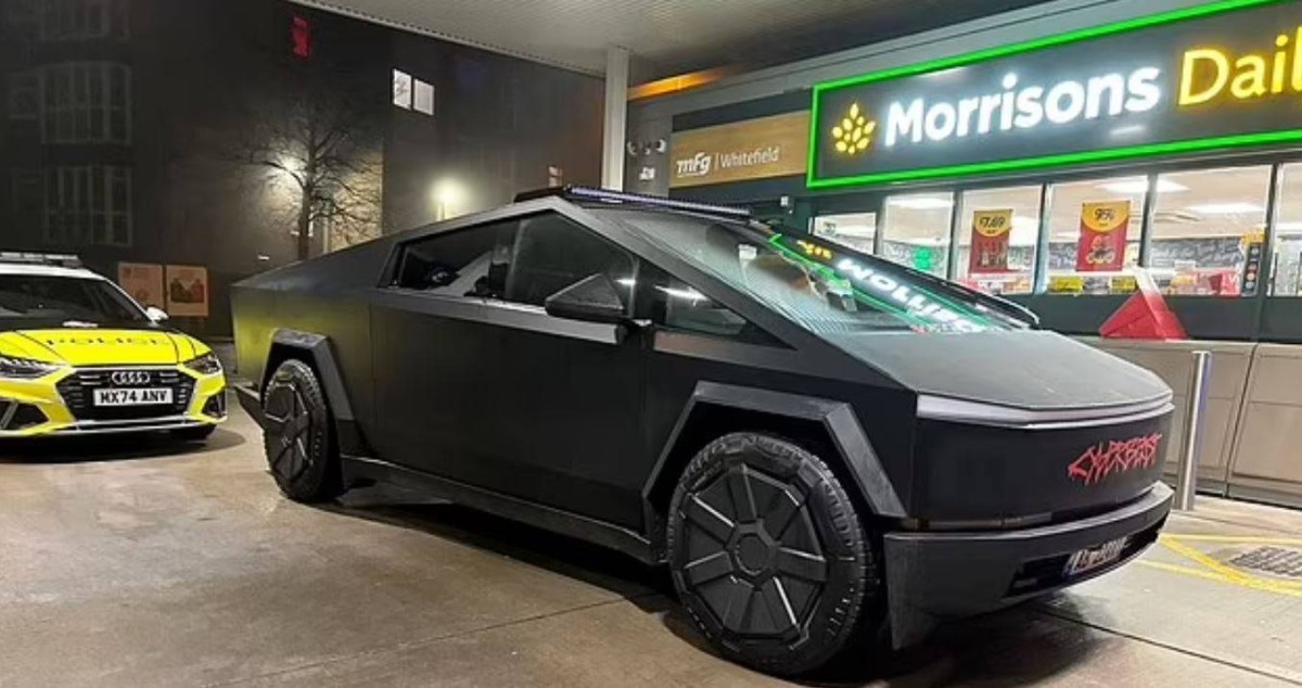 في منشور على وسائل التواصل الاجتماعي قالت شرطة مانشستر الكبرى: «أوقف ضباط من وحدة نقل GMP سيارة «سايبرتراك» في وايتفيلد الليلة الماضية.
