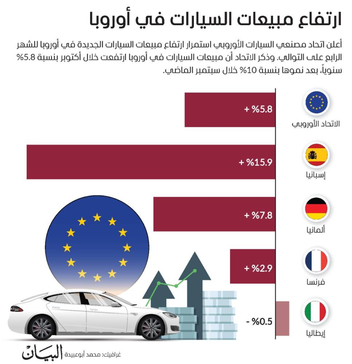 ارﺗﻔﺎع ﻣﺒﻴﻌﺎت اﻟﺴﻴﺎرات ﻓﻲ أوروﺑﺎ