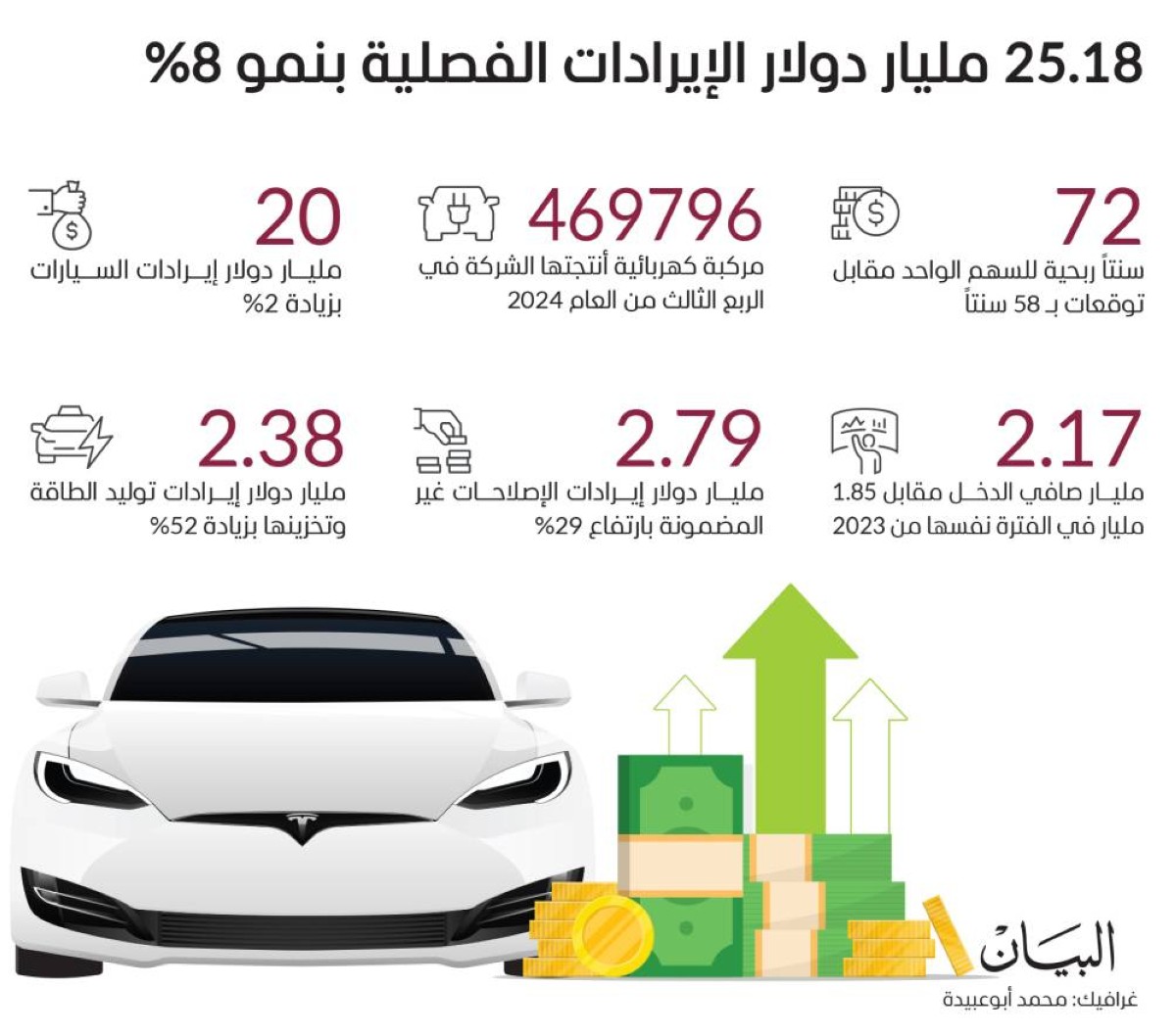 تجاوزت أرباح «تسلا» في الربع الثالث توقعات وول ستريت، وتوقعت زيادة طفيفة في عمليات التسليم للعام الحالي، مما يعكس انتعاش الطلب على السيارات الكهربائية للشركة.