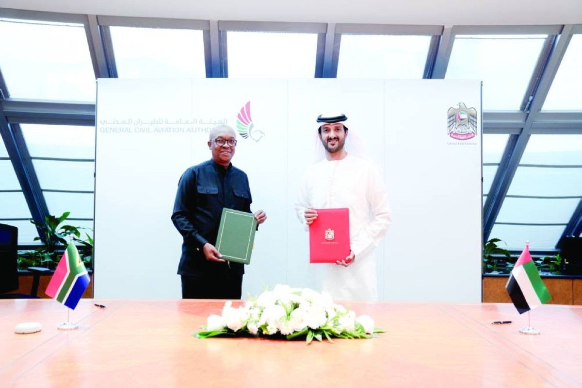 وقعت الهيئة العامة للطيران المدني في دولة الإمارات بروتوكولاً لتحديث اتفاقية خدمات النقل الجوي مع سلطة الطيران المدني في جمهورية جنوب أفريقيا، بما يسهم في تعزيز العلاقات الثنائية في مجال النقل الجوي بين البلدين.
