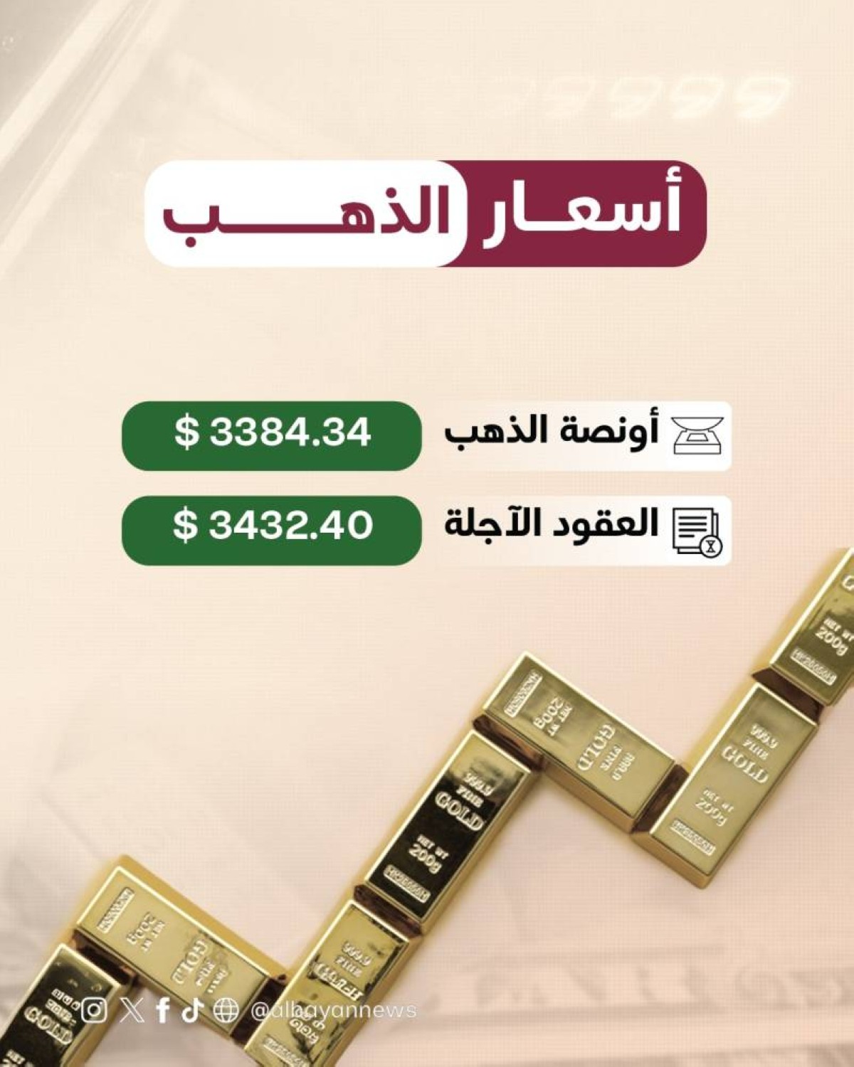 وبحلول الساعة 00:55 بتوقيت جرينتش، ارتفع سعر الذهب في المعاملات الفورية 0.5 بالمئة إلى 3384.34 دولاراً للأوقية (الأونصة)، وهو أعلى مستوى له منذ 11 أغسطس.