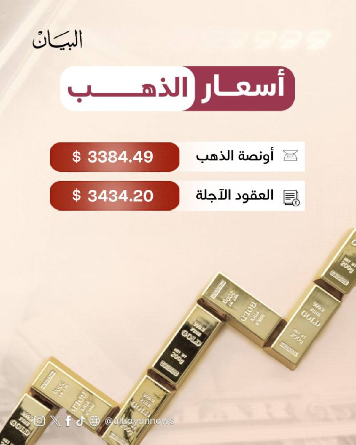 وأضاف "قد نرى على المدى القريب ضغوطا صعودية لاختبار مستوى 3400 دولار، وإذا تجاوزه فسيكون المستوى التالي هو 3435 دولارا".
