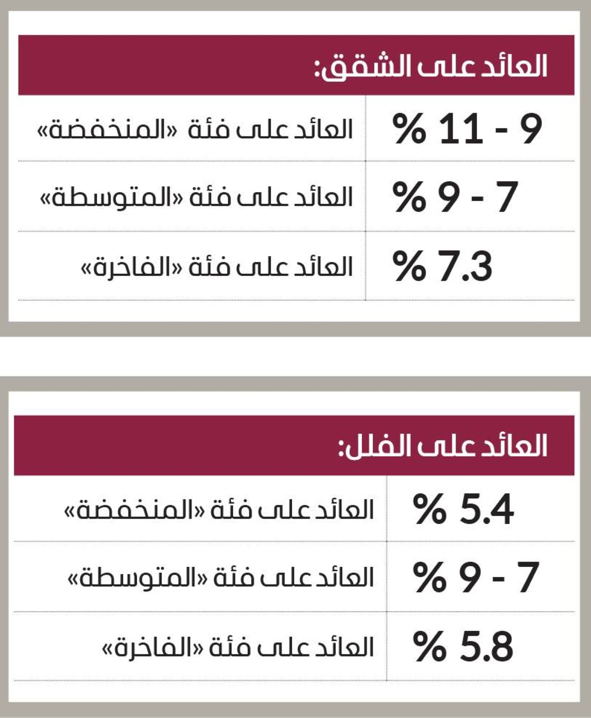 علاوة على ذلك، تتراوح عوائد الاستثمار في الفلل ذات الأسعار المتوسطة في مناطق «قرية جميرا الدائرية» و«مجمع مُدن» و«تاون سكوير» بين 7 - 9%. ضمن فئة الفلل الفاخرة، حققت فلل «مدينة محمد بن راشد» و«البرشاء» و«البراري» عوائد تجاوزت 5.8%.