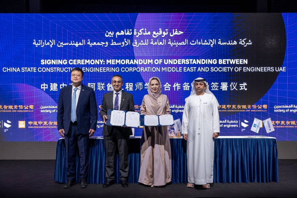 وفي محطةٍ بارزة ضمن الفعاليات، جرى توقيع مذكرة تفاهم بين CSCEC ME وجمعية المهندسين بدولة الامارات العربية المتحدة، وقّعتها الشيخة الدكتورة نهلة القاسمي، نائب رئيس الجمعية، مع المهندس منصور فريد، كبير مهندسي CSCEC ME، إيذانًا بمرحلةٍ جديدةٍ من التعاون في البحث والابتكار وتطوير الكفاءات وبناء القدرات. ووصف المهندس عبدالله يوسف العلي، رئيس جمعية المهندسين بدولة الامارات العربية المتحدة، هذه الشراكة بأنها «خطوة مهمة لتبادل الخبرات وتعميم أفضل الممارسات الهندسية»، مشيدًا بدور CSCEC ME في توطين تقنيات البناء الحديثة وتوجيه مسار التطوير المستقبلي.