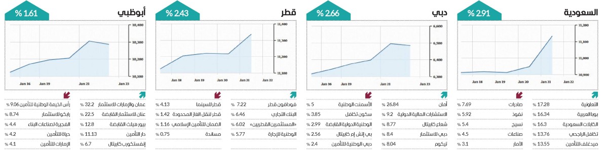 ارتفاع جماعي للأسواق العربية ومسقط تخالف الاتجاه