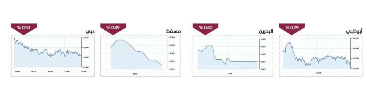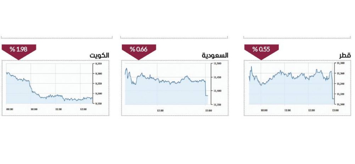 وشهدت أغلب مؤشرات البورصات العربية تراجعاً في الأداء، إذ تراجع المؤشر السعودي «تاسي» 0.66%، والكويتي 1.98%، والقطري 0.55%، ومسقط 0.49%، والبحرين 0.40%، وخارج منطقة الخليج، أغلقت بورصة مصر أبوابها بمناسبة 25 يناير وعيد الشرطة.