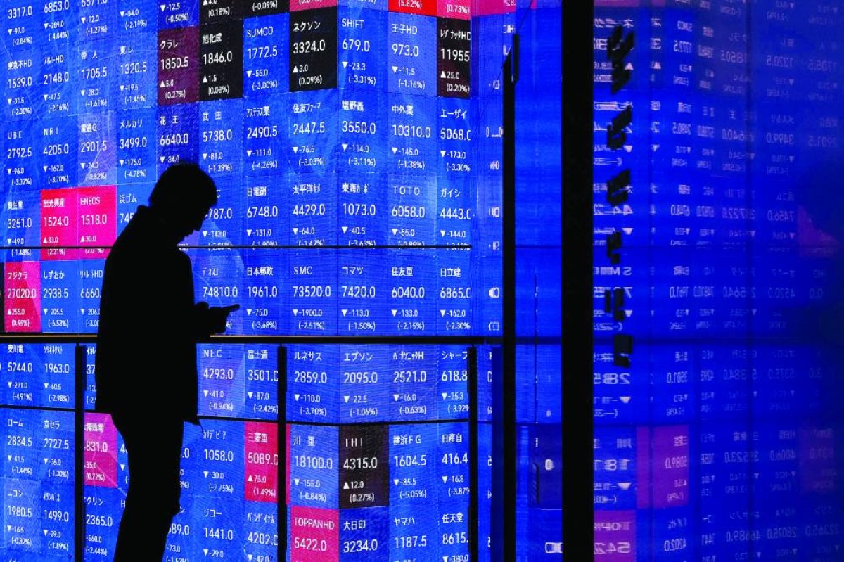 مستثمر يمر أمام شاشات للأسعار في بورصة طوكيو