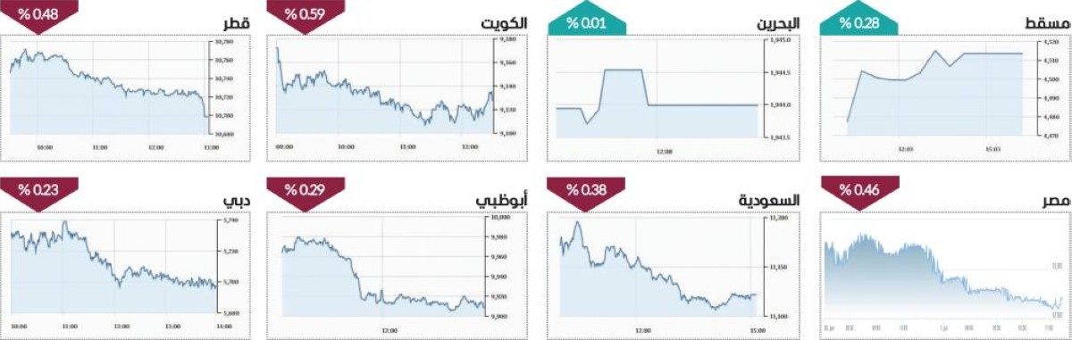 وعلى مستوى البورصات العربية، تراجع مؤشر «تاسي» السعودي 0.38%، والكويت 0.59%، وقطر 0.48%، بينما صعدت بورصة مسقط 0.28%، والبحرين 0.01%، وخارج منطقة الخليج، انخفض مؤشر بورصة مصر 0.46%.
