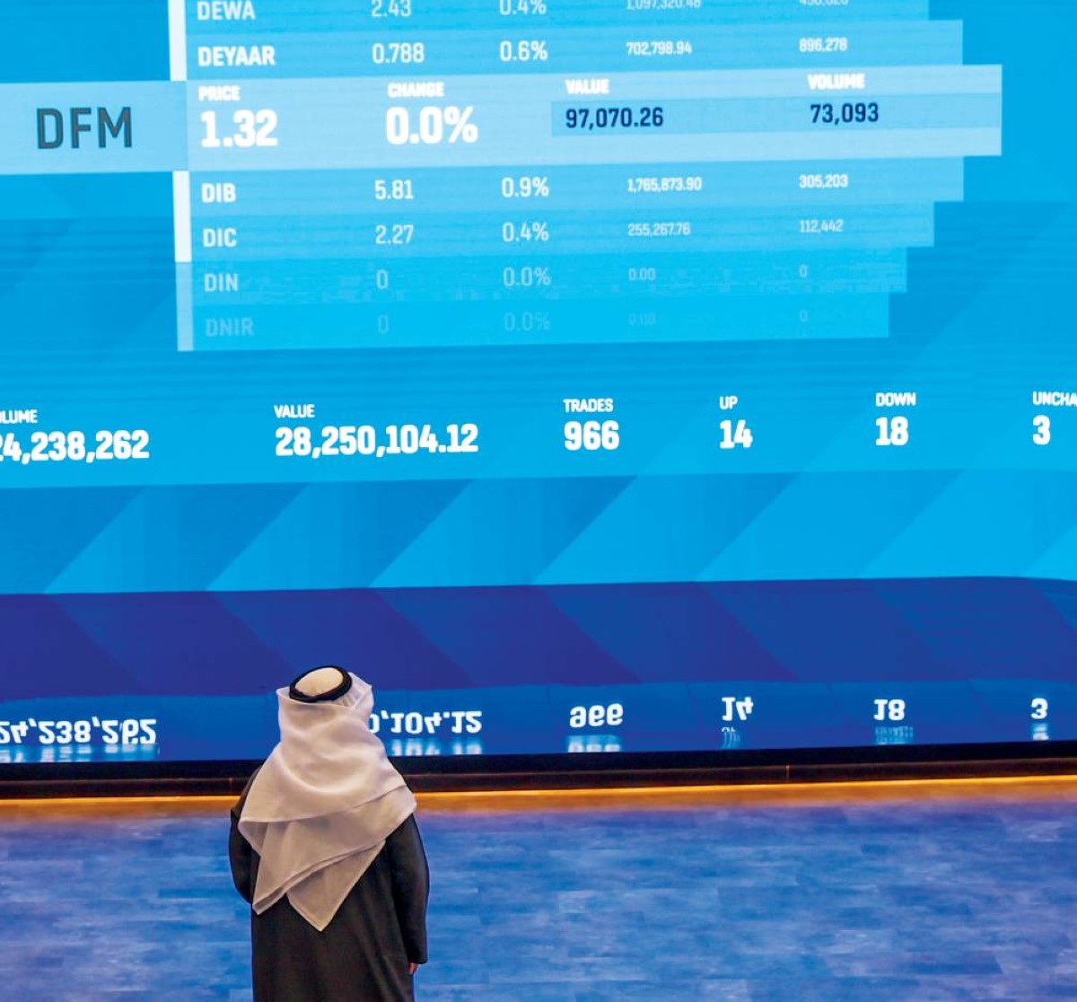 وارتفع رأس المال السوقي لأسهم دبي المدرجة من 1.002 تريليون درهم في نهاية جلسة الجمعة الماضية إلى 1.009 تريليون درهم بنهاية جلسة أمس.