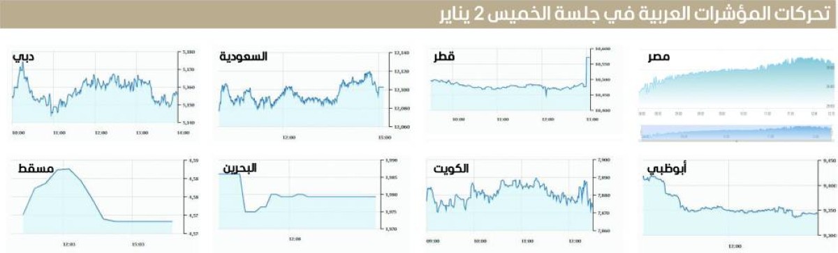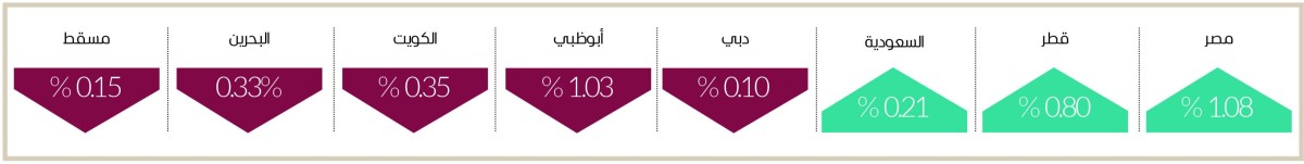 في غضون ذلك، تباين معظم أسواق الأسهم العربية في ختام تعاملات أمس، حيث ارتفعت بورصة قطر 0.80 %. فيما انخفض الكويت 0.35 %، والبحرين 0.33 %، ومسقط 0.15 %.