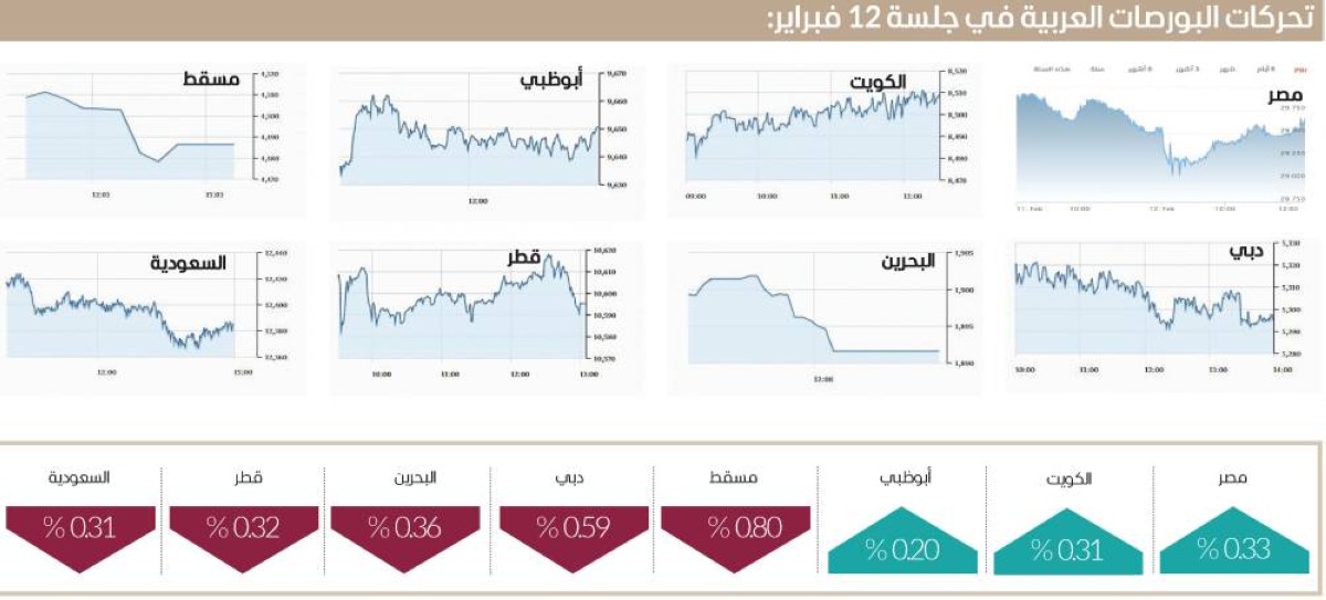 وعلى مستوى البورصات العربية تراجع «تاسي» السعودي 0.31%، وقطر 0.32%، ومسقط 0.80%، والبحرين 0.36%، في حين ارتفع مؤشر الكويت 0.31%، وخارج منطقة الخليج، صعد مؤشر بورصة مصر 0.33%.