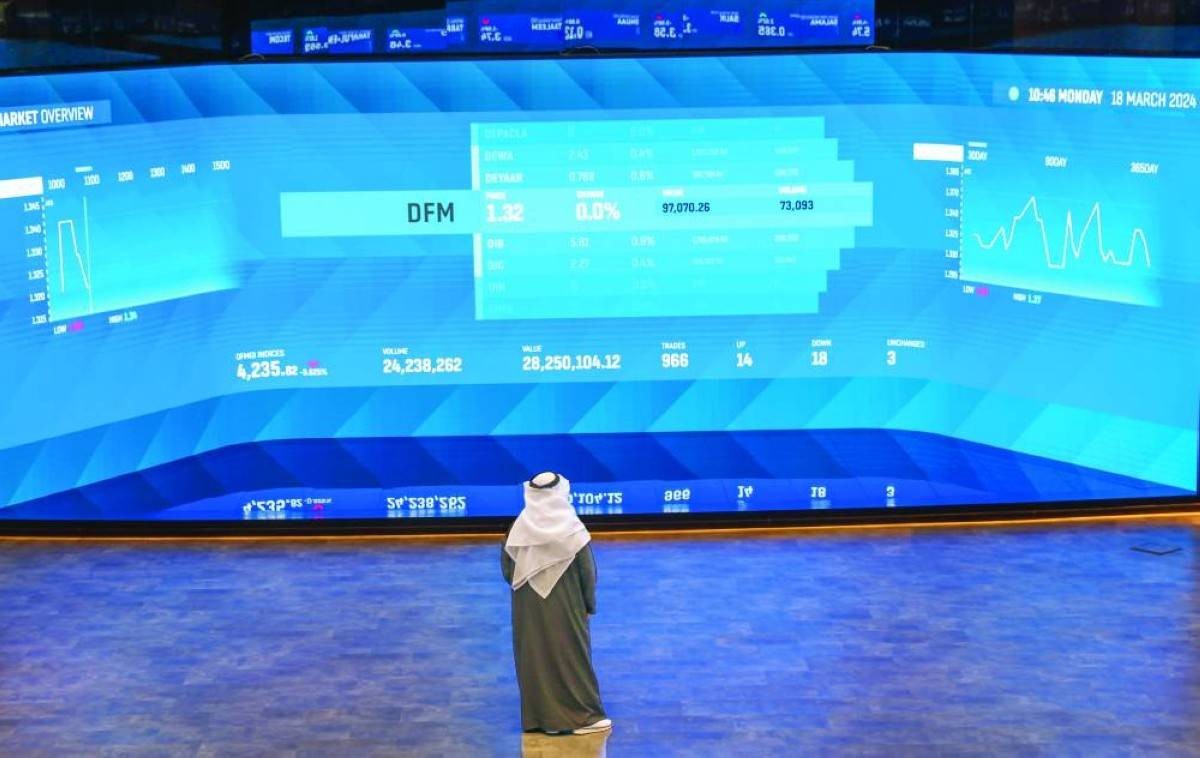 وأغلق مؤشر سوق دبي عند 6111.97 نقطة بآخر جلسات الأسبوع. واتجه المستثمرون الأجانب (غير العرب) نحو الشراء في سوق دبي بصافي استثمار 92.64 مليون درهم في 5 جلسات، محصلة مشتريات بقيمة 1.27 مليار درهم مقابل 1.17 مليار مبيعات.