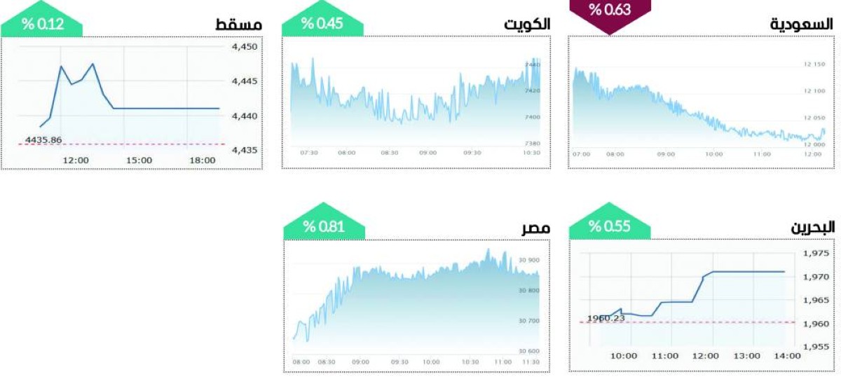 جاءت المكاسب متفاوتة، حيث دعمت الارتفاعات في البورصة الكويتية معنويات المتعاملين بعد الإجازات، كما سجلت بورصات مسقط والبحرين والأردن صعوداً ملحوظاً، وسط نشاط بارز في الأسهم القيادية. وفي مصر، انعكس التفاؤل على المؤشر الرئيسي EGX30، رغم ضغوط بيعية محدودة على الأسهم الصغيرة والمتوسطة.