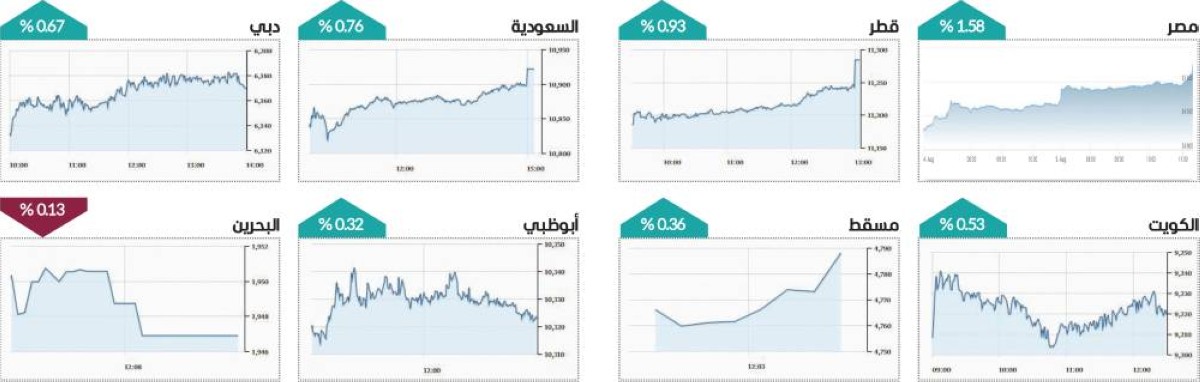 وشهدت أغلب مؤشرات الأسواق العربية ارتفاعاً في الأداء، إذ صعد المؤشر السعودي 0.76%، والكويتي 0.53%، والقطري 0.93%، ومسقط 0.36%، فيما تراجعت بورصة البحرين 0.13%، وخارج منطقة الخليج، قفز مؤشر بورصة مصر 1.58%.