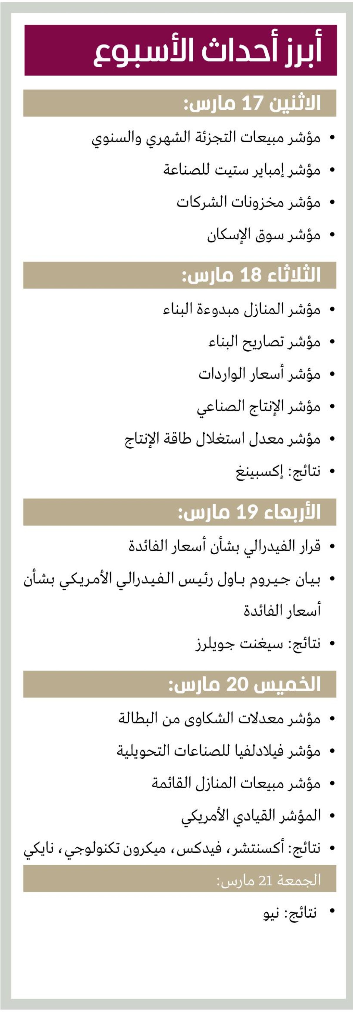 وتقول وكالة رويترز: إنَّ «الأسواق تتوقع أن يُبقي الفيدرالي على أسعار الفائدة دون تغيير يوم الأربعاء؛ إلا أن المستثمرين يترقبون مؤشرات على إمكانية تنفيذ خفض لاحق هذا العام». ويعقّب دومينيك بابالاردو كبير استراتيجيي الأصول المتعددة في «مورنينج ستار ويلث» بقوله: «السوق يحاول بأي وسيلة معرفة متى سيشعر الفيدرالي بالراحة الكافية لتنفيذ خفض جديد لأسعار الفائدة، وأعتقد أن العناوين السياسية والقرارات المفاجئة المقبلة من البيت الأبيض لن تتوقف في أي وقت قريب». وعززت البيانات الأخيرة بشأن التضخم المعتدل من التوقعات بأن الفيدرالي قد يميل إلى تخفيف السياسة النقدية.