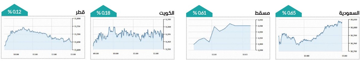 وشهدت أغلب مؤشرات الأسواق العربية ارتفاعاً في الأداء، حيث صعد «تاسي» السعودي 0.65 %، والكويتي 0.18 %، والقطري 0.12 %، ومسقط 0.61 %، فيما تراجعت بورصة البحرين 0.14%، وخارج منطقة الخليج، قفز مؤشر بورصة مصر 0.78 %.