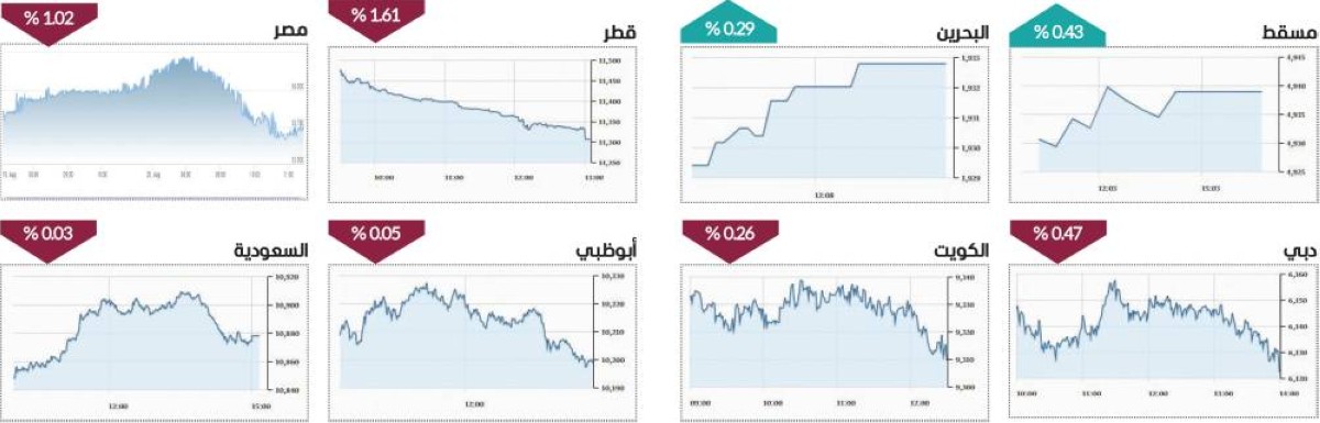 وشهدت معظم البورصات العربية تراجعاً في الأداء، إذ تراجع «تاسي» السعودي 0.03%، والكويتي 0.26%، والقطري 1.61%، فيما ارتفعت بورصتا مسقط 0.43%، والبحرين 0.29%، وخارج منطقة الخليج، هبط مؤشر بورصة مصر 1.02%.
