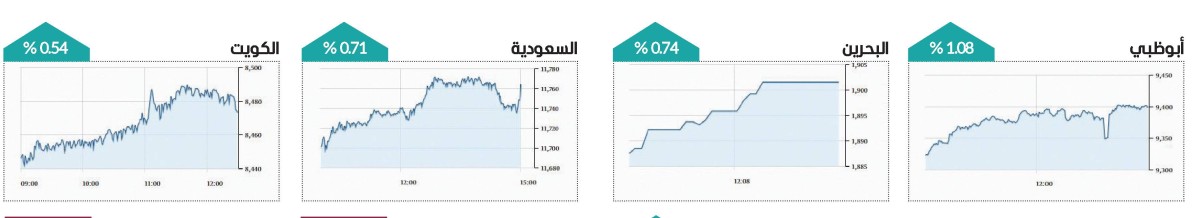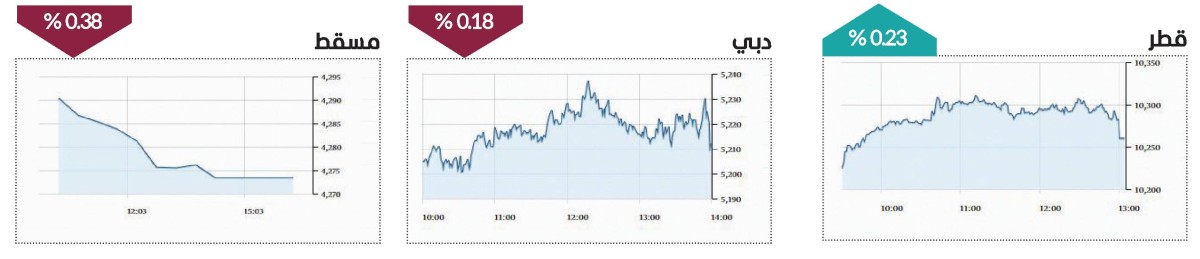وعلى مستوى البورصات الخليجية، صعد «تاسي» السعودي 0.71%، والكويت 0.54%، وقطر 0.23%، والبحرين 0.74%، فيما تراجعت بورصة مسقط 0.38%.