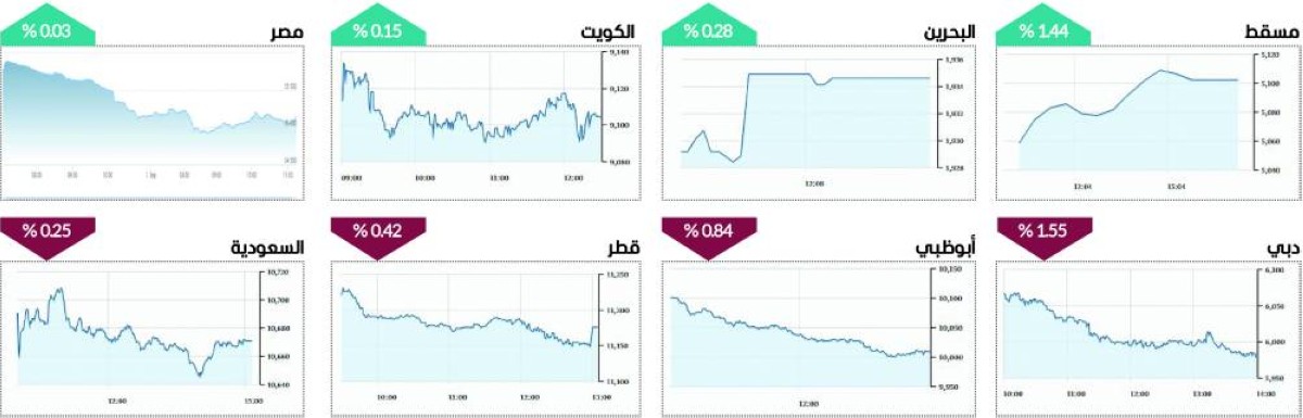 وشهدت البورصات العربية تبايناً في الأداء، إذ تراجع «تاسي» السعودي 0.25%، والقطري 0.42%، في حين ارتفعت بورصات الكويت 0.15%، ومسقط 1.44%، والبحرين 0.28%، وخارج منطقة الخليج، صعد مؤشر بورصة مصر 0.03%.