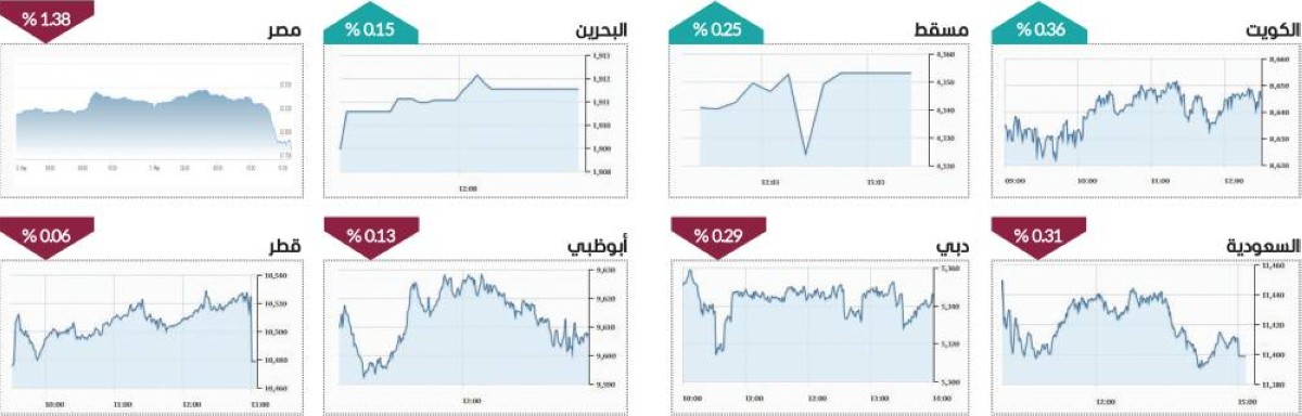 وعلى مستوى البورصات العربية، تراجع «تاسي» السعودي 0.31%، وقطر 0.06%، بينما صعدت بورصات الكويت 0.36%، ومسقط 0.25%، والبحرين 0.15%، وخارج منطقة الخليج، انخفض مؤشر بورصة مصر 1.38%.