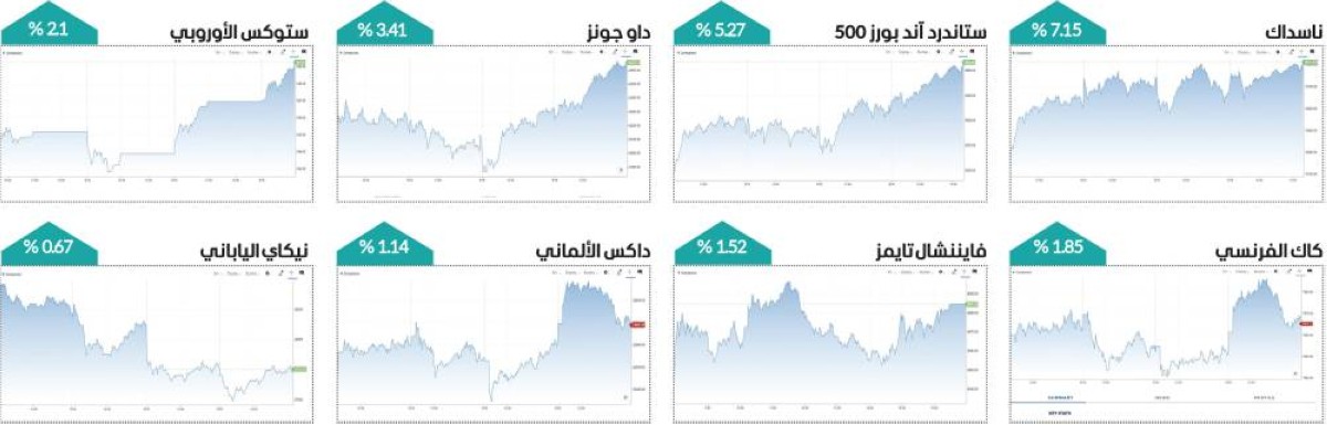 شهدت الأسواق العالمية موجة من الارتفاعات الجماعية في مؤشرات الأسهم هذا الأسبوع، مدفوعة بعدة عوامل دعمت شهية المخاطرة لدى المستثمرين وأزاحت جانباً من مخاوف عدم اليقين التي خيمت طويلاً على المشهد الاقتصادي العالمي.