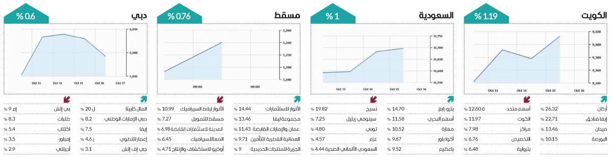 كما تأثرت الأسواق إيجابياً، بتزايد ثقة المستثمرين وإقبالهم على الشراء، وسط آمال بانطلاق موسم قوي للنتائج عن الربع الثالث، وبيانات أول 9 أشهر من العام، والتوزيعات السخية من جانب الشركات المدرجة.