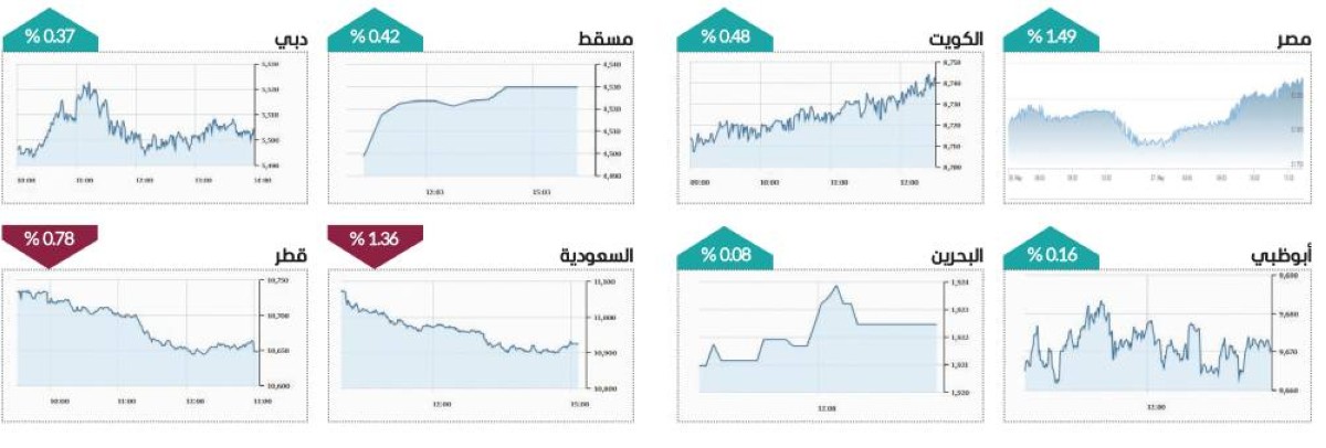 وعلى مستوى البورصات العربية، تراجع المؤشر السعودي 1.36%، والقطري 0.78%، بينما ارتفعت بورصة الكويت 0.48%، ومسقط 0.42%، والبحرين 0.08%، وخارج منطقة الخليج، قفز مؤشر بورصة مصر بـ1.49%.
