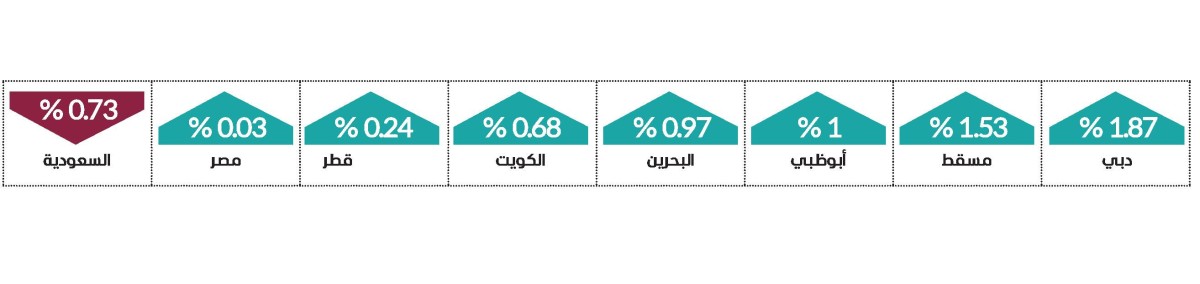 وكانت مؤشرات الأسهم المحلية قد أغلقت، أمس، على اللون الأخضر، حيث أغلق مؤشر سوق دبي مرتفعاً 0.83 %، في حين أغلق سوق أبوظبي على نمو قدره 0.09 %.