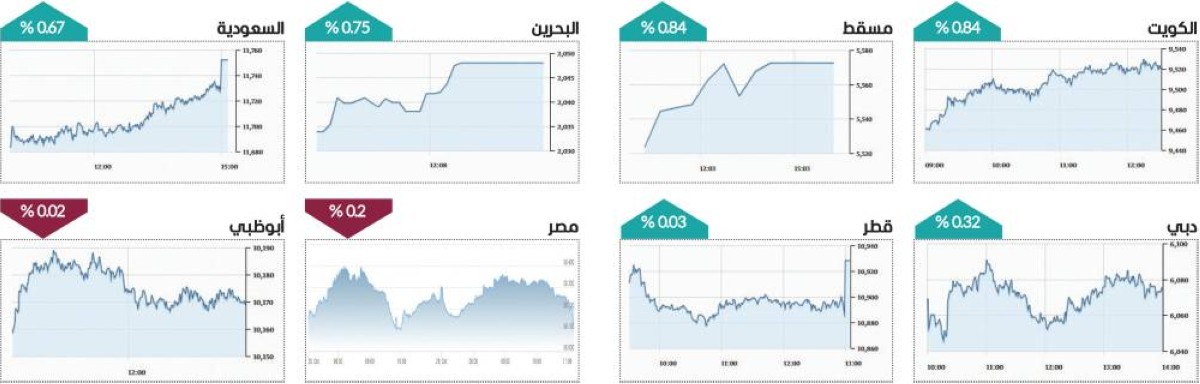 على مستوى البورصات العربية، ارتفع «تاسي» السعودي 0.67%، والكويتي 0.84%، والقطري 0.03%، ومسقط 0.84%، وبورصة البحرين 0.75%، وخارج منطقة الخليج، تراجع مؤشر بورصة مصر 0.2%.
