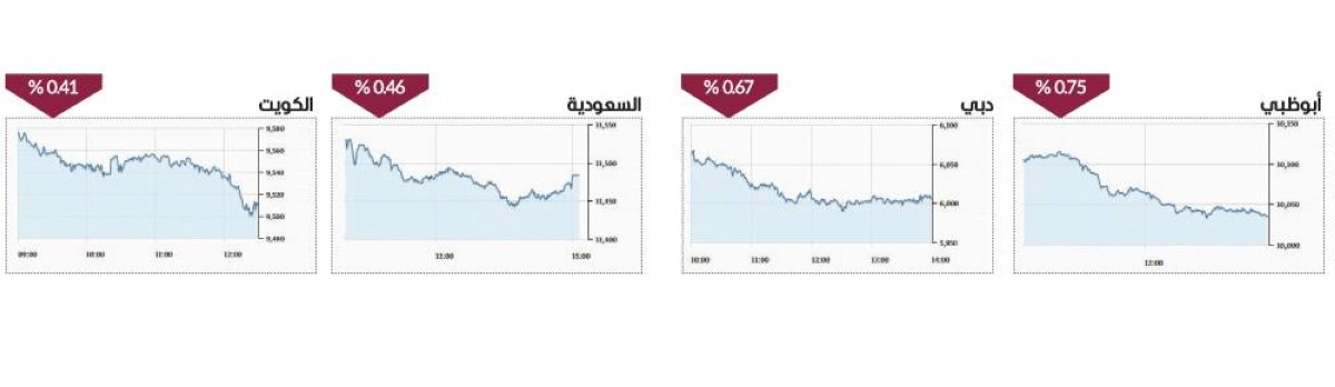 وشهدت مؤشرات البورصات العربية تبايناً في الأداء، إذ تراجع «تاسي» السعودي 0.46%، والكويتي 0.41%، في حين ارتفعت بورصات قطر 0.89%، ومسقط 0.72%، والبحرين 0.22%، وخارج منطقة الخليج، صعد مؤشر بورصة مصر 1.4%.