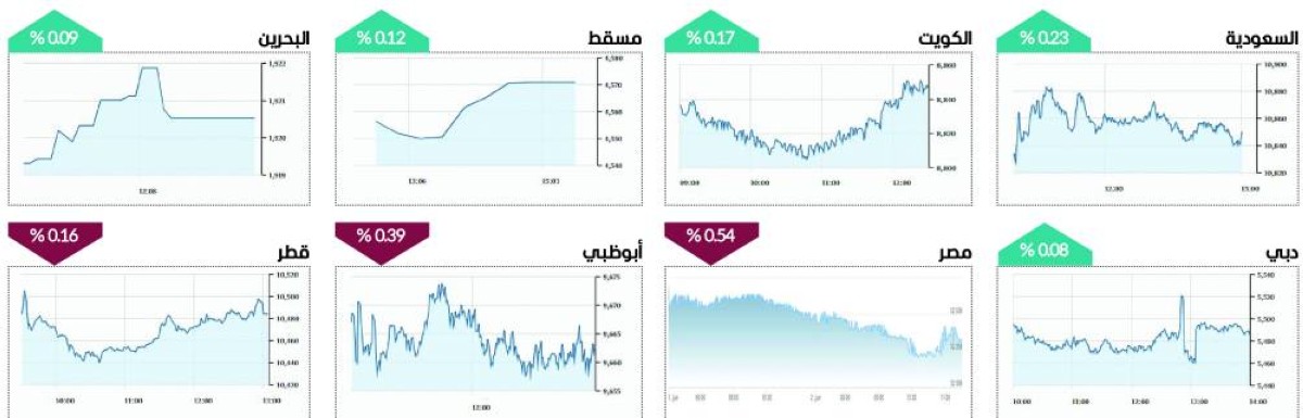 وعلى مستوى البورصات العربية، ارتفع «تاسي» السعودي 0.23%، والكويت 0.17%، ومسقط 0.12%، والبحرين 0.09%، بينما تراجعت بورصة قطر 0.16%، وخارج منطقة الخليج، انخفض مؤشر بورصة مصر 0.54%.