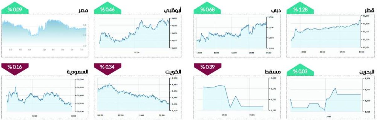 وعلى مستوى البورصات العربية، تراجع مؤشر «تاسي» السعودي 0.16%، والكويت 0.34%، ومسقط 0.39%، بينما ارتفعت بورصة قطر 1.28%، والبحرين 0.03%، وخارج منطقة الخليج، صعد مؤشر بورصة مصر 0.09%.
