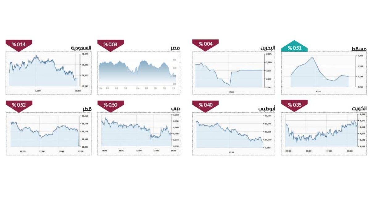 وخيم الحذر على أغلب البورصات العربية التي شهدت تراجعاً في الأداء، إذ تراجع «تاسي» السعودي 0.14%، والكويتي 0.35%، والقطري 0.52%، والبحرين 0.04%، فيما ارتفعت بورصة مسقط 0.51%، وخارج منطقة الخليج، انخفض مؤشر بورصة مصر 0.08%.
