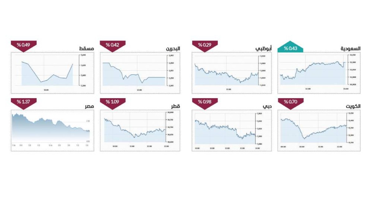 وسيطر التراجع على أغلب مؤشرات البورصات العربية، باستثناء «تاسي» السعودي، الذي ارتفع 0.43%، فيما تراجعت بورصات الكويت 0.70%، وقطر 1.09%، ومسقط 0.49%، والبحرين 0.42%، وخارج منطقة الخليج، هبط مؤشر بورصة مصر 1.37%.