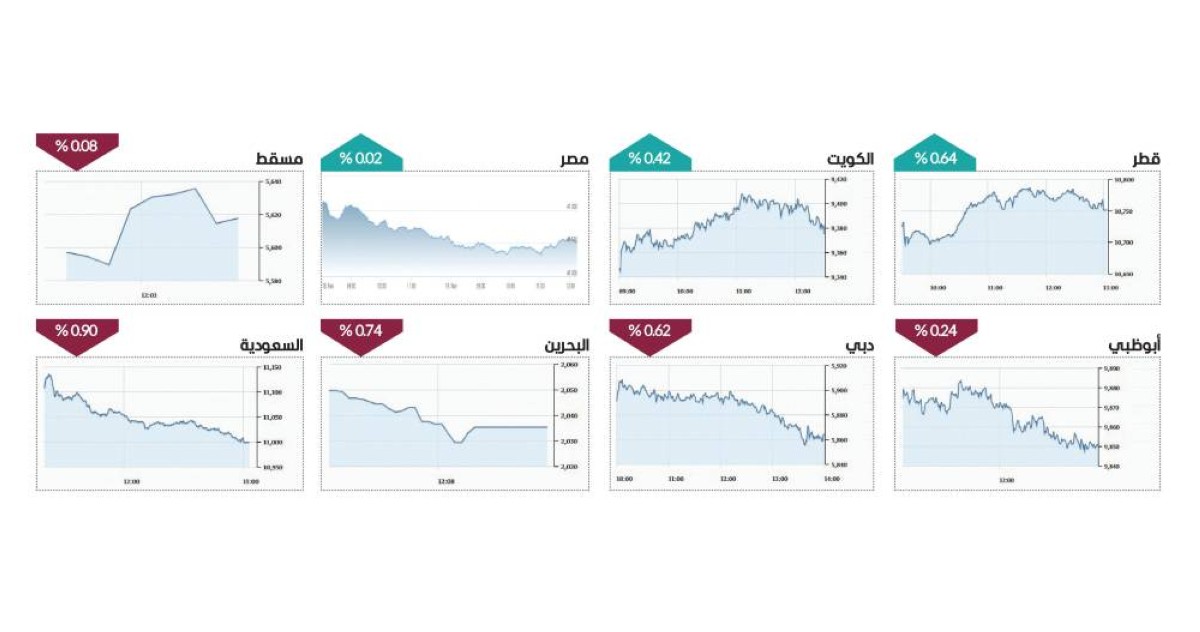 وغلب الحذر على معظم مؤشرات البورصات العربية، إذ تراجع «تاسي» السعودي 0.90%، ومسقط 0.08%، والبحرين 0.74%، فيما ارتفعت بورصتا الكويت 0.42%، وقطر 0.64%، وخارج منطقة الخليج، صعد مؤشر بورصة مصر بشكل طفيف 0.02%.
